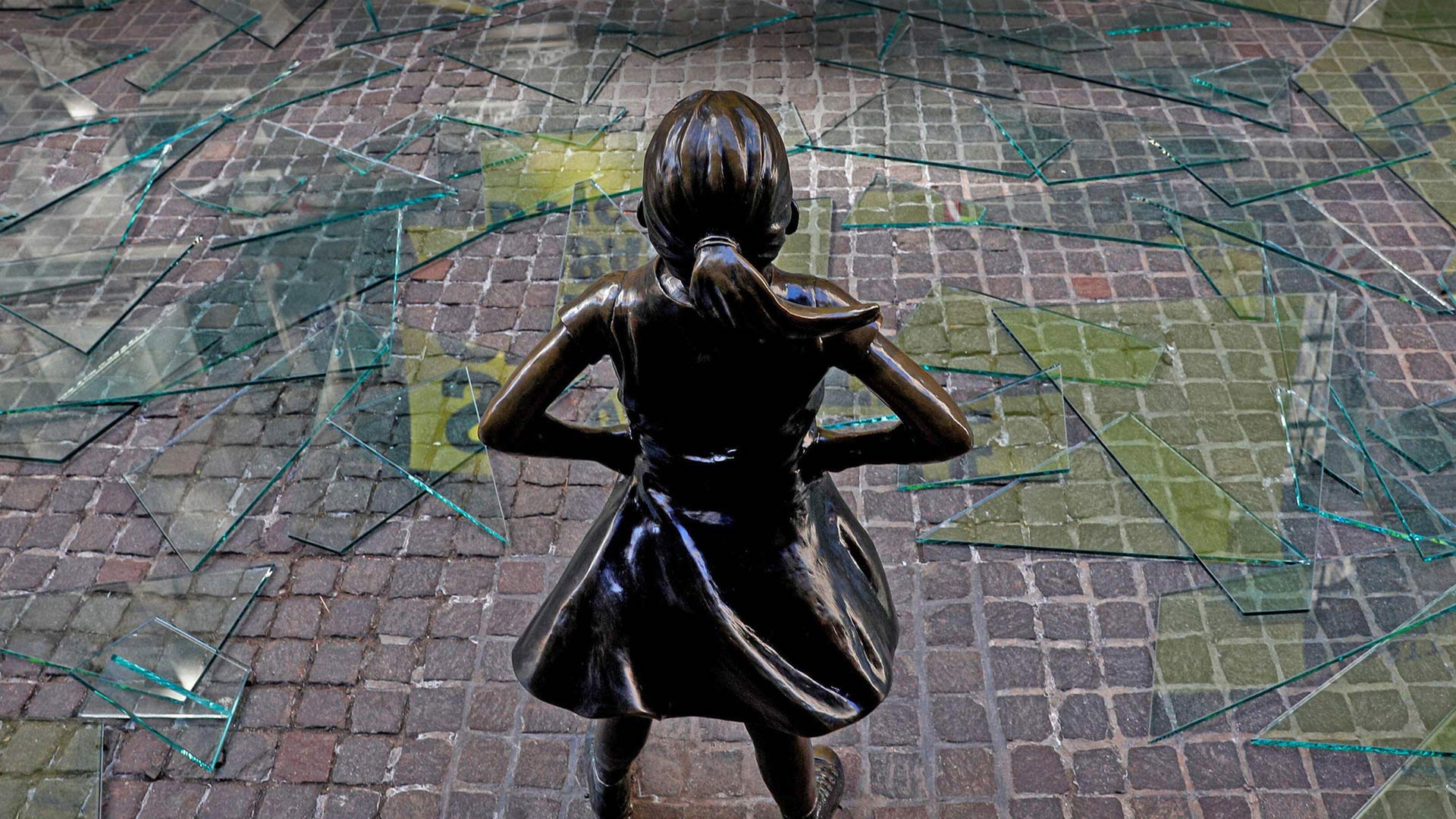 The 'Fearless Girl' statue outside the 纽约州 Stock Exchange in 纽约市 (© Brendan McDermid/Alamy)