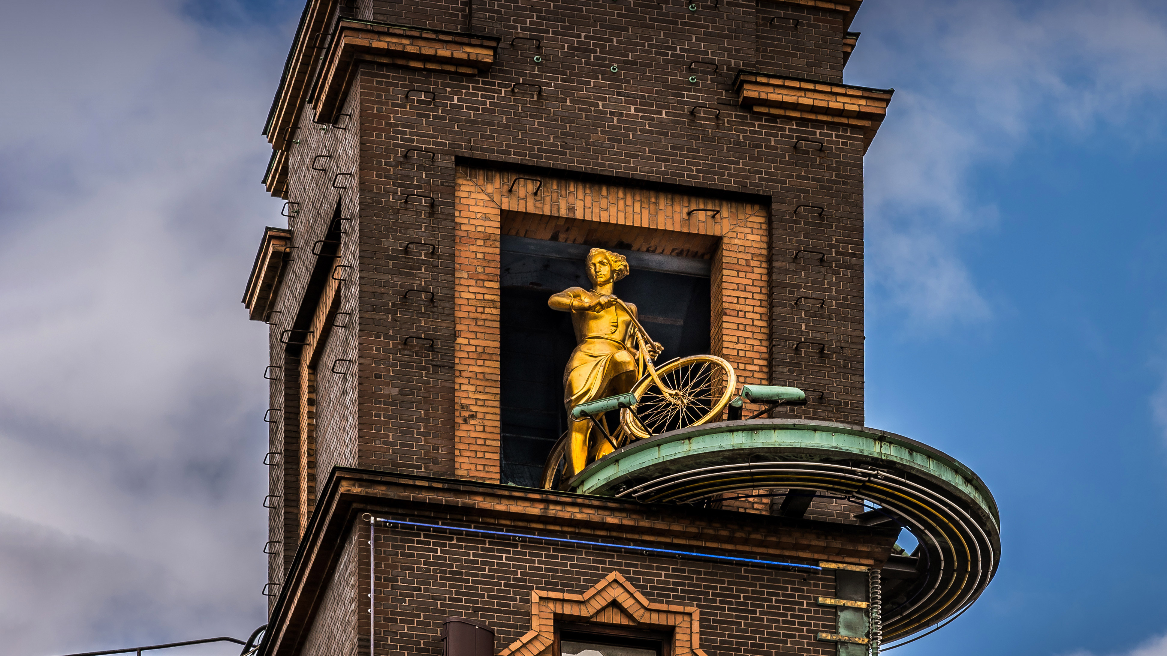 'Vejrpigerne' ('The Weather Girls') sculpture on top of the Richshuset building in City Hall Square