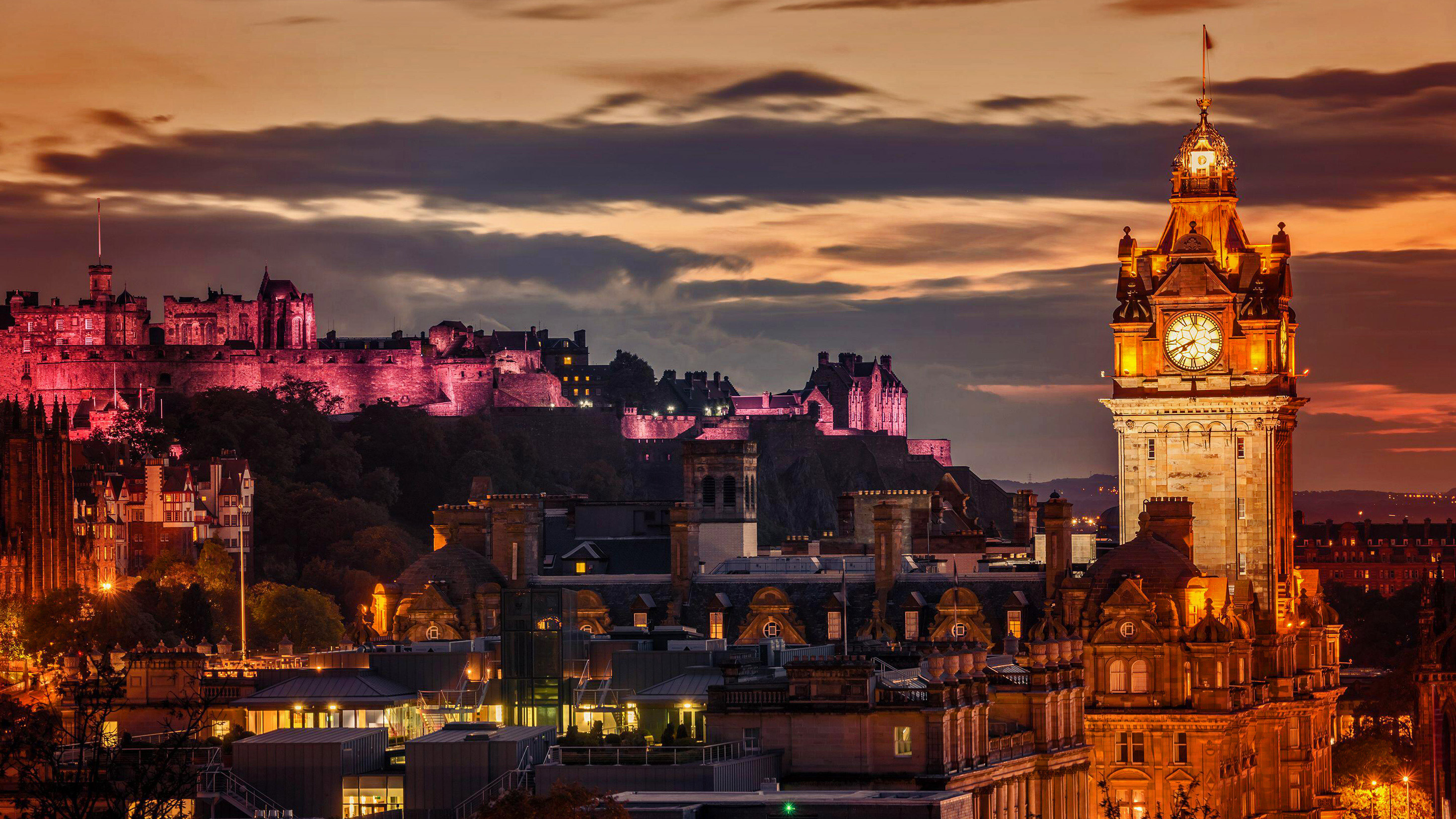 埃丁堡h city skyline at night, 苏格兰 (© Suranga Weeratuna/Alamy)
