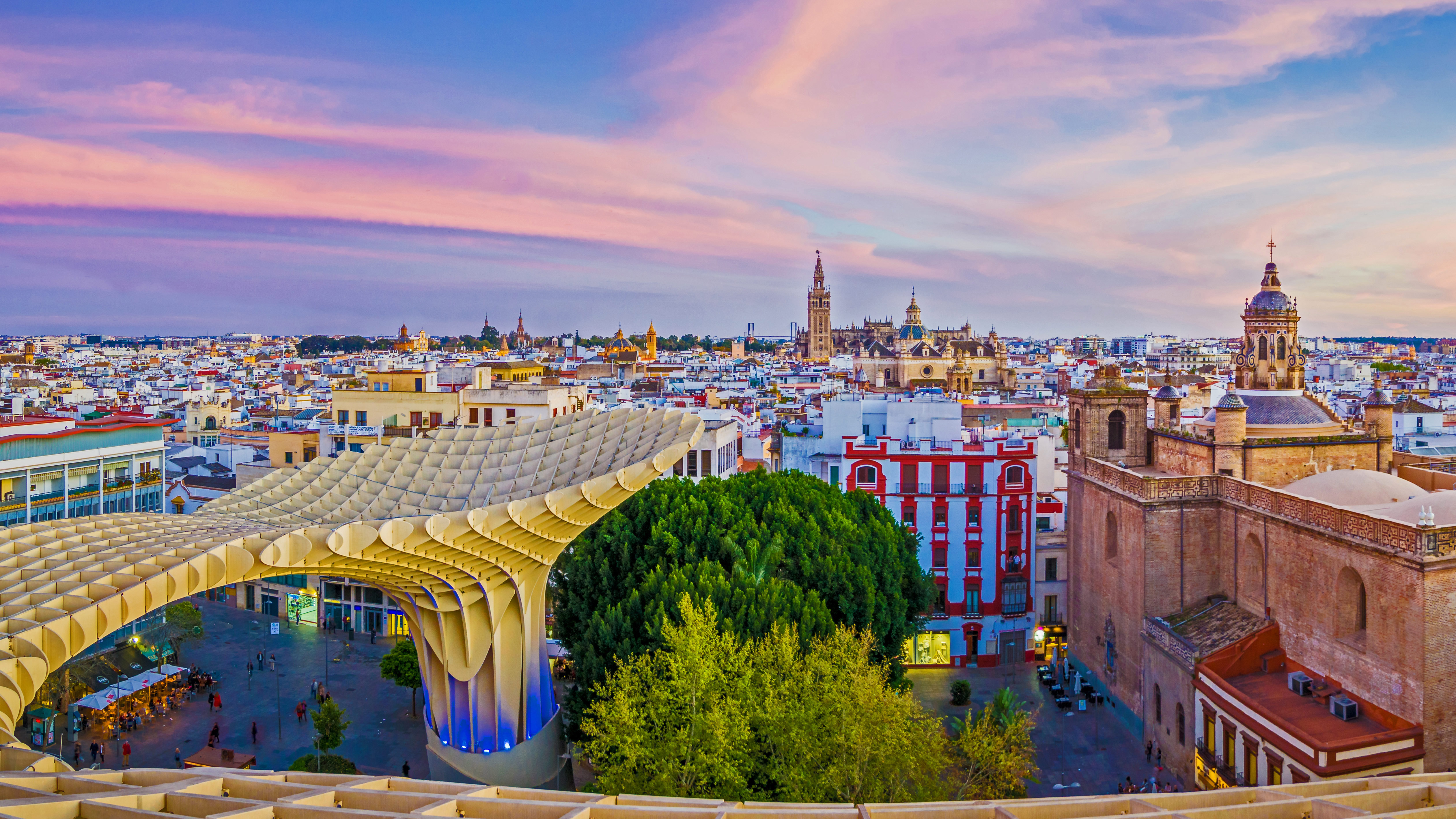 View of the city from the Setas de Sevilla (Metropol Parasol) in Seville, 西班牙 (© LucVi/Shutterstock)