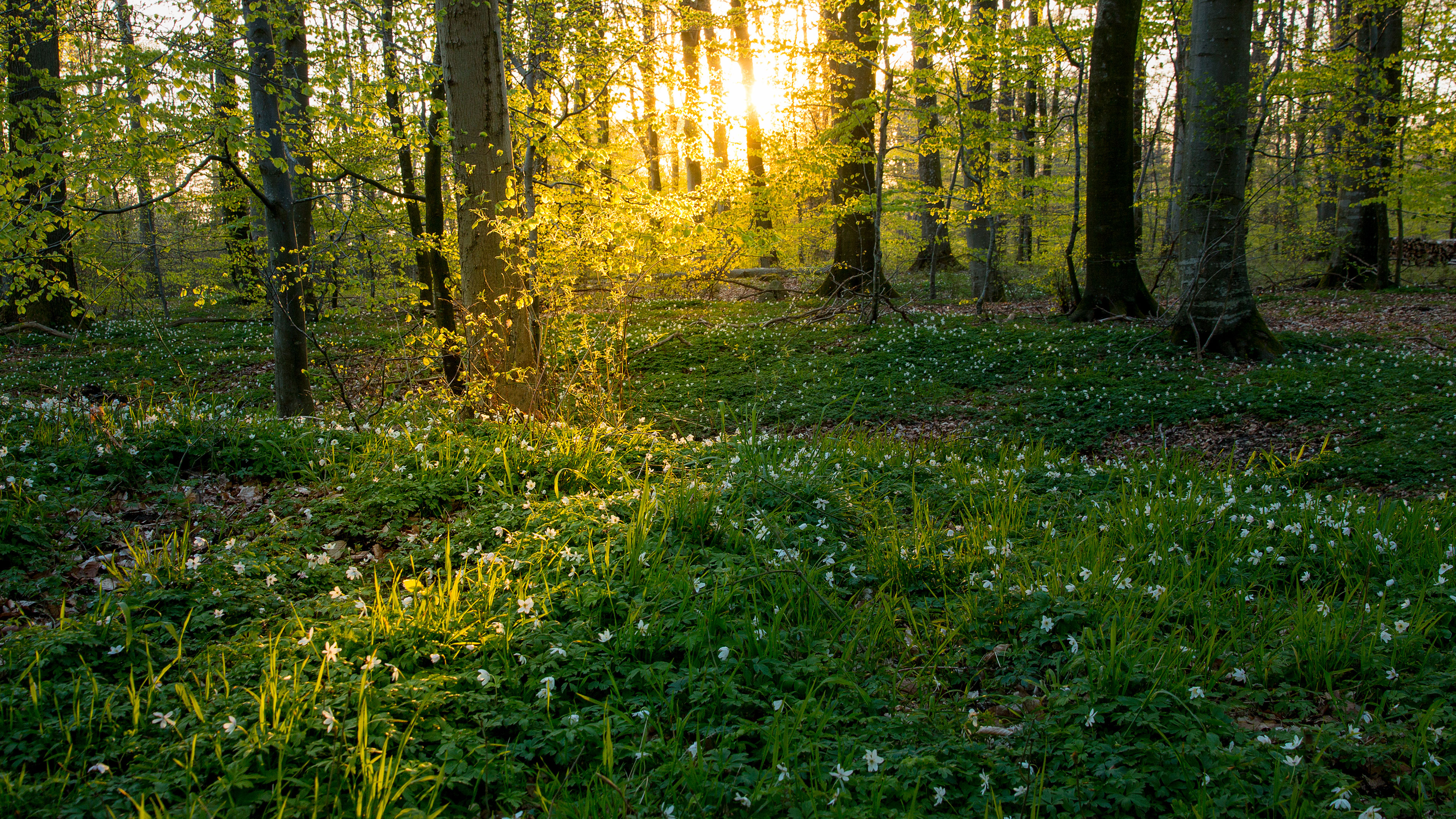 Beech trees and wild anemones, Jutland, 丹麦 (© Nick Brundle Photography/盖蒂图片社)