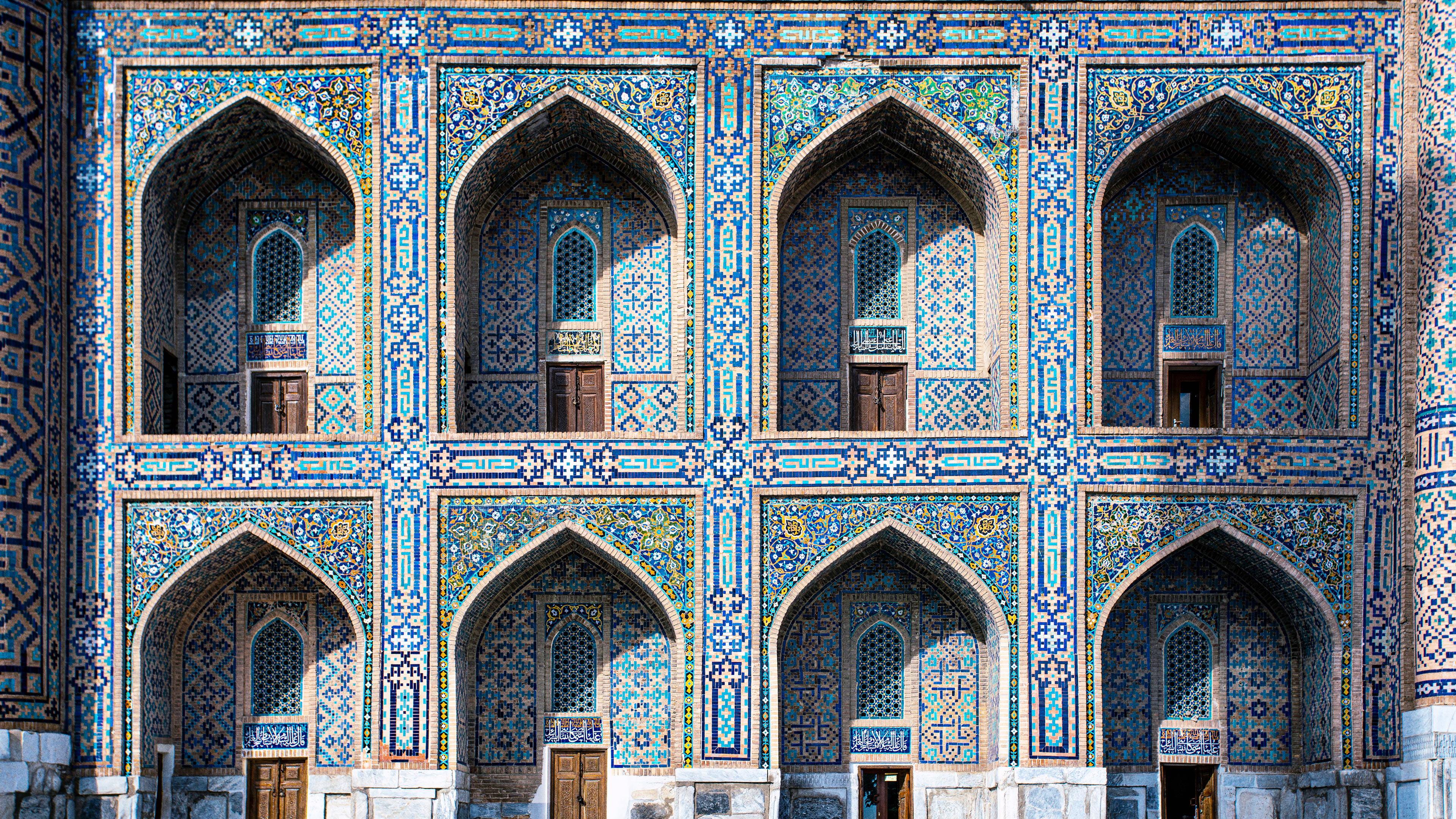 Mosaic façade in Registan Square, Samarkand, Uzbekistan (© da-kuk/盖蒂图片社)