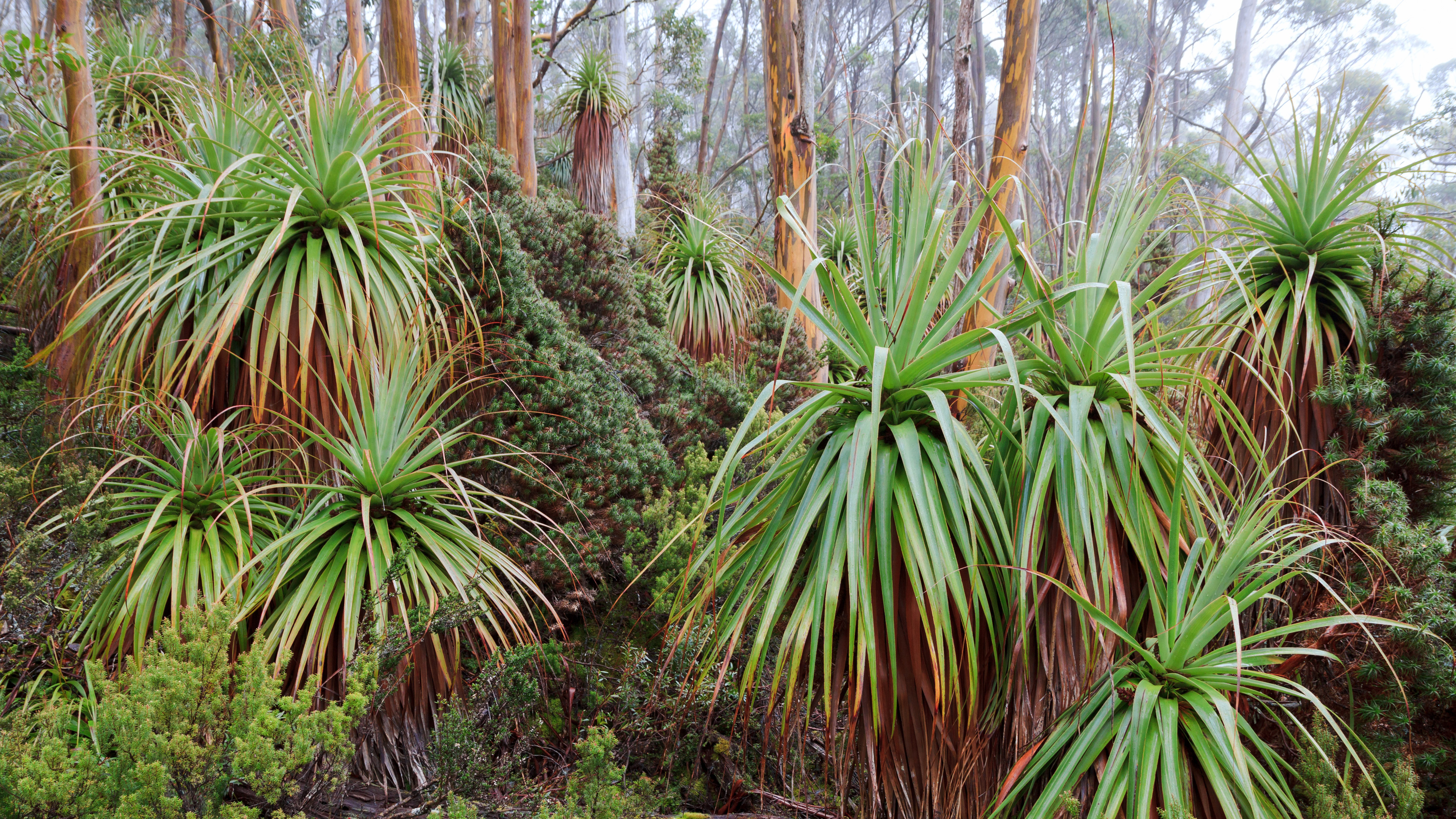 Tasmanian snow gum and pandani plants near Lake Dobson, Mount Field National Park, Tasmania, 澳大利亚 (© Whitworth Images/盖蒂图片社)